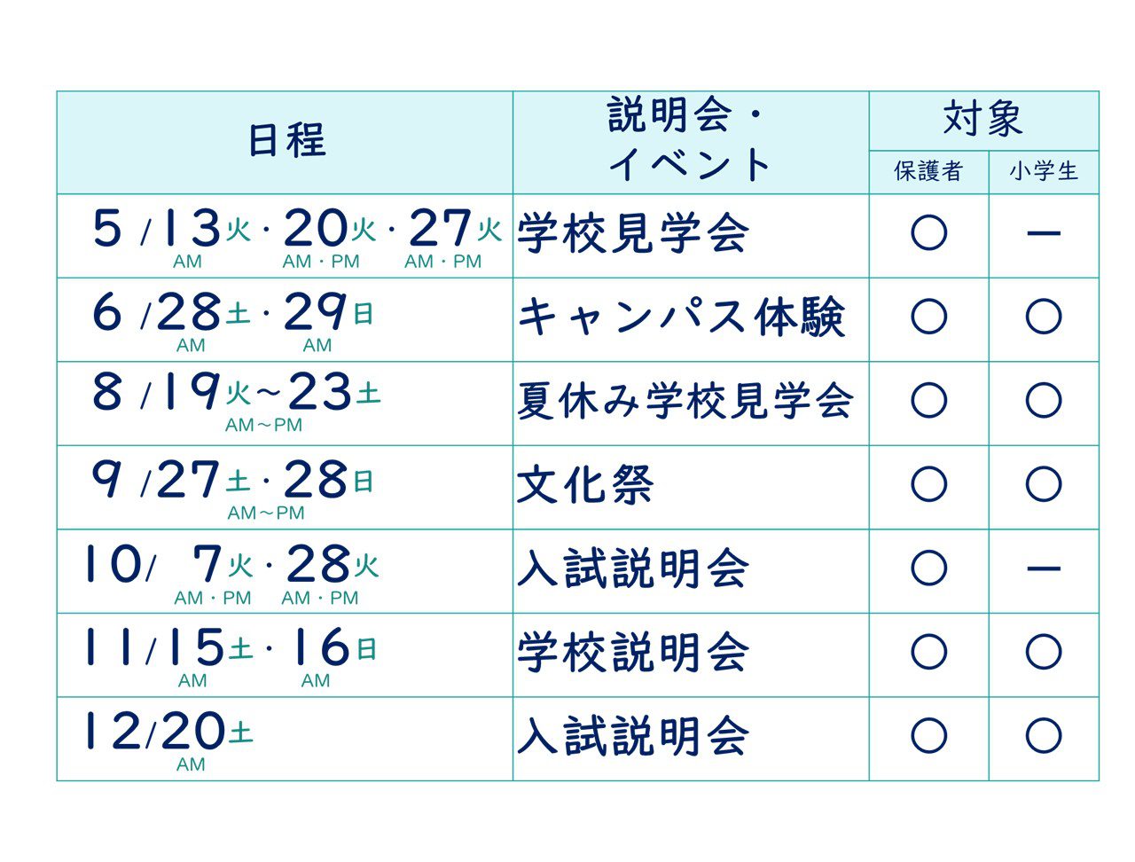 2025年度 説明会・校内見学カレンダー