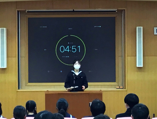 自分の考えや気持ちを的確な言葉でわかりやすく表現できる力をつけることを目指し、授業の中でお互いの意見を出し合ったり、評価し合ったりする活動を日常的に行うほか、スピーチをしたり、聞いたり、ディスカッションをする機会を多く設けています。